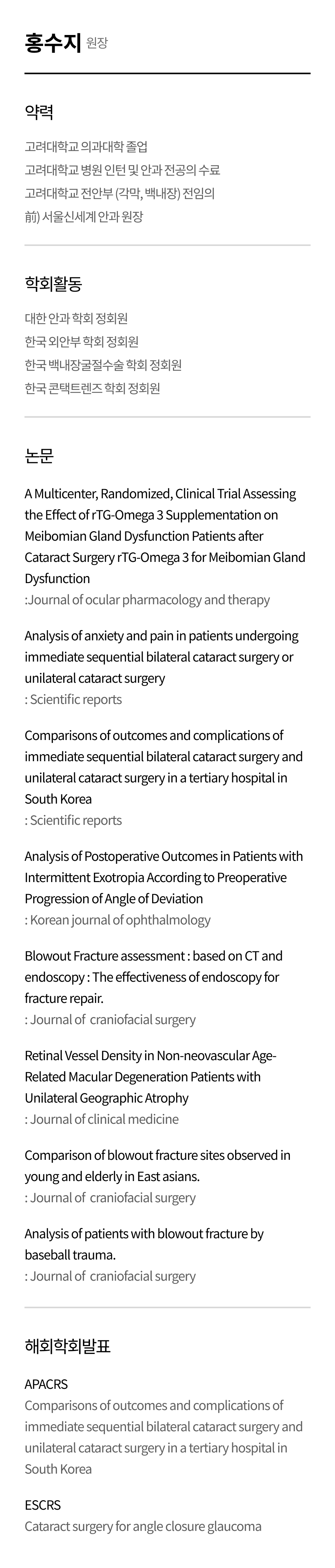 적절한 시기와 적합한 치료로 환자의 눈과 마음을 편안하게 어루만질 수 있는 의술을 펼치겠습니다.